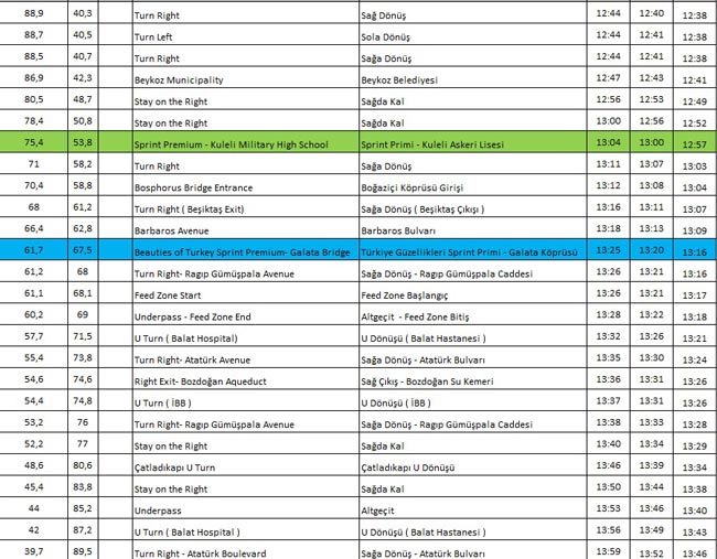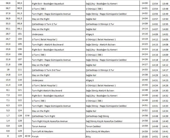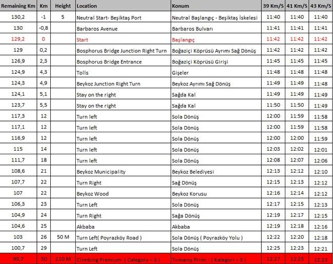 BİSİKLET TURU'NDA SAAT SAAT GEÇİŞ YOLLARI