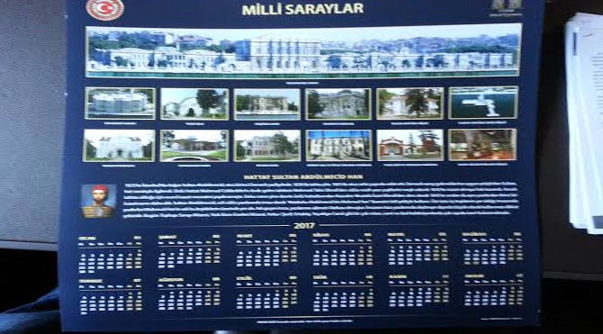 Farklı saray fotoğraflarının yanı sıra hat çalışmalarından örnekler de kullanılan takvimde, TBMM'nin kurucusu Atatürk'e yer verilmedi. Takvimde, Osmanlı padişahlarından Abdülmecid’in fotoğrafı kullanıldı ve “Hattat Sultan Abdülmecid Han” ifadesine yer verildi. İstanbul’da TBMM’ye bağlı Milli Saraylar Daire Başkanlığı bünyesinde 10 ayrı kasır, saray ve köşk bulunuyor.