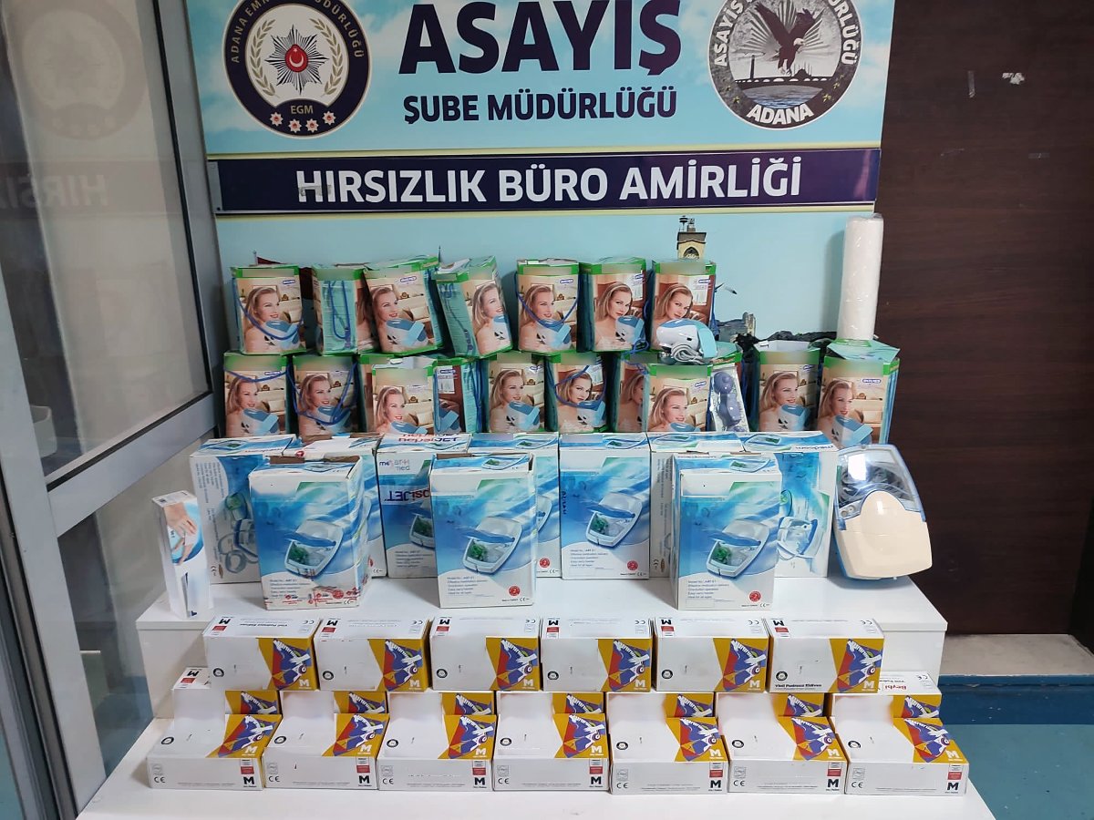 İş yerinden 5 bin eldiven, 150 ateş ölçer, 240 paket hasta bezi, 600 antiseptik solüsyon, 800 idrar sondası dahil 250 bin lira değerinde medikal ürünü çalan şüpheliler, dışarıda kendilerini bekleyen kişinin otomobiliyle kaçtı. Bu anlar ise iş yerinin güvenlik kamerasına anbean yansıdı.