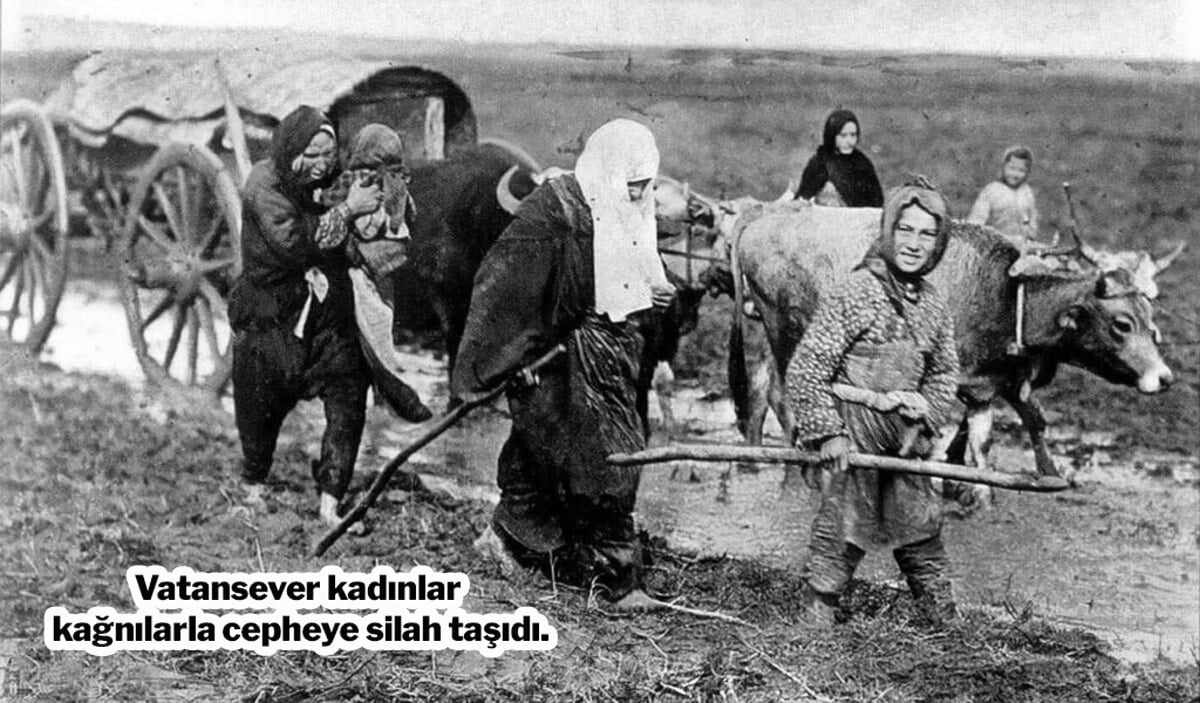Mustafa Kemal “gözüm cephede, kulağım İnebolu’da” diyordu. Boşuna demiyordu... Kağnı konvoylarımız, uçsuz bucaksız insan seli, tek sıra halinde akıyordu. Kağnıya sığmayanları sırtlarında taşıyorlardı, yavaş yavaş adım atarken, top mermilerinin ağırlığıyla öne doğru eğiliyorlardı. Hemen hepsi kadındı. Rengarenk eteklikli yöresel kıyafetler, çiçekli şalvarlar giyen bu kadınlarımızın bazıları, sırtlarına sarılı yükleriyle beraber, kucaklarında emzikli bebeklerini taşıyorlardı. Bazılarının arkasında, minik adımlarla takip eden küçük çocuklar vardı. Kocaları cephede vuruşan kahraman kadınlarımız, annelerimiz, kız kardeşlerimiz, sağanak yağmur demeden, kar fırtınasına aldırmadan, Küre Dağları’nı böyle aşıyorlardı.