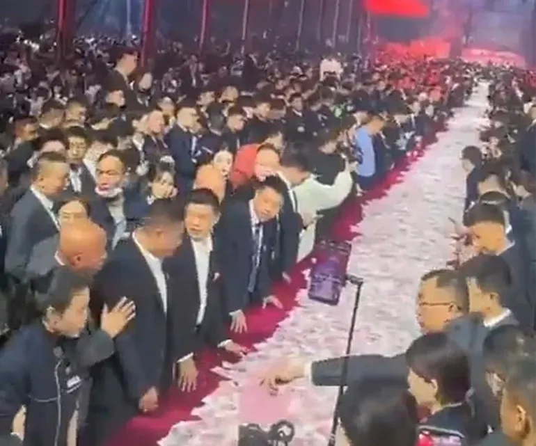 Çin’in Henan eyaletinde faaliyet gösteren Henan Kuangshan Crane adlı vinç üretim devi, benzeri görülmemiş bir ödüllendirme yöntemine imza attı. Geleneksel yıl sonu gala gecesinde yaklaşık 7 bin çalışanı bir araya getiren şirket, salondaki 800 ziyafet masasını toplam 26 milyon dolar tutarında nakit parayla doldurdu.