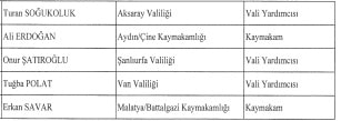 İçişleri Bakanlığı tarafından yapılan atamaların listesi Resmi Gazete'de yayımlanarak yürürlüğe girmiş oldu.