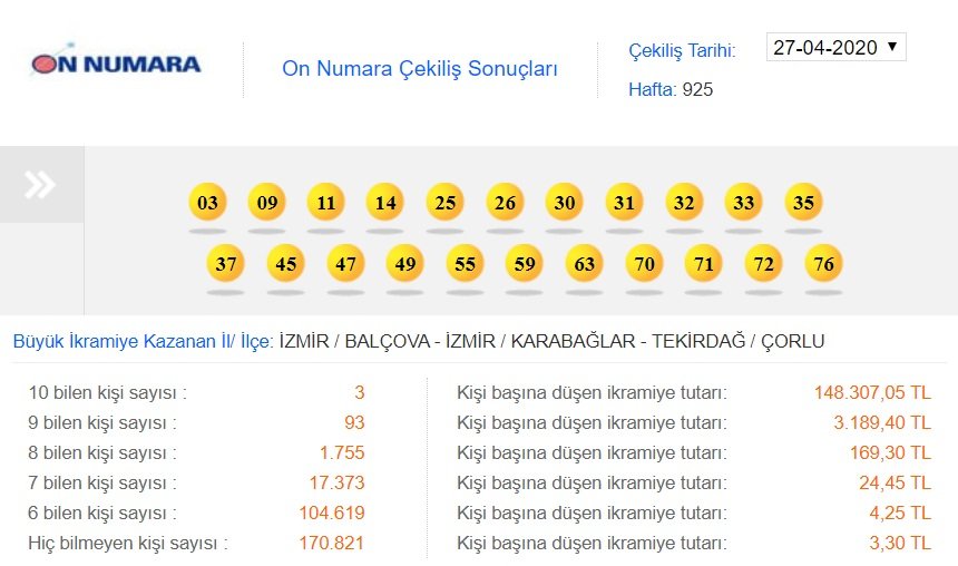 ON NUMARA SONUÇLARI AÇIKLANDI