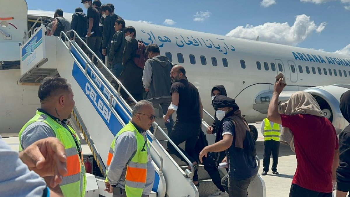 Afgan göçmenler, sınır dışı işlemlerinin ardından uçakla ülkelerine gönderildi. (DHA)