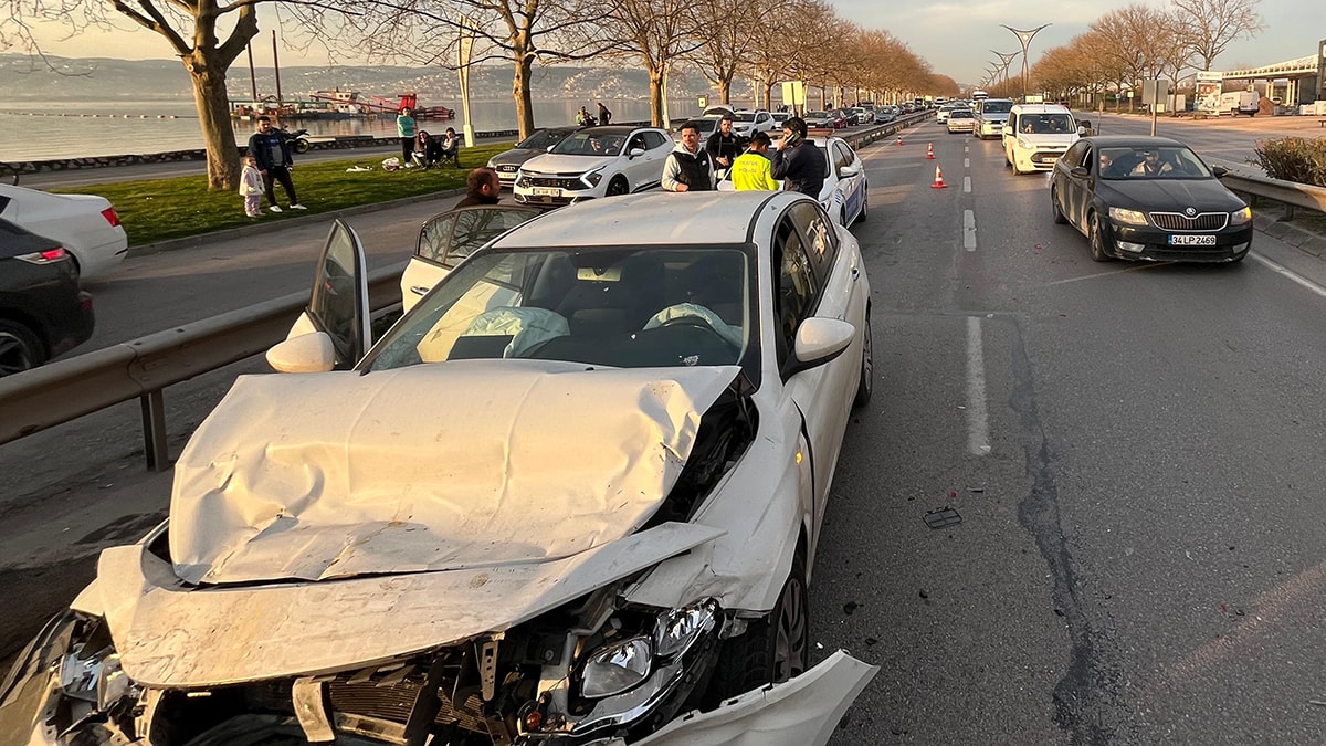 Kocaeli'de Sanayi Mahallesi Ömer Türkçakal Bulvarı Gölcük istikametinde T.T. idaresindeki 20 GN 752 plakalı otomobil, E.T. yönetimindeki 34 CRT 982 otomobil ve sürücüsünün kimliği henüz belirlenemeyen 41 NV 012 plakalı otomobil çarpıştı.