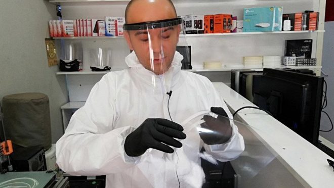İş yerinde evinde çalışarak 3 boyutlu yazıcıyla günde yaklaşık 40 tane siper maske üreten Yılmaz, daha sonra maskeleri ilçede bulunan sağlık kuruluşlarına bağışlıyor.