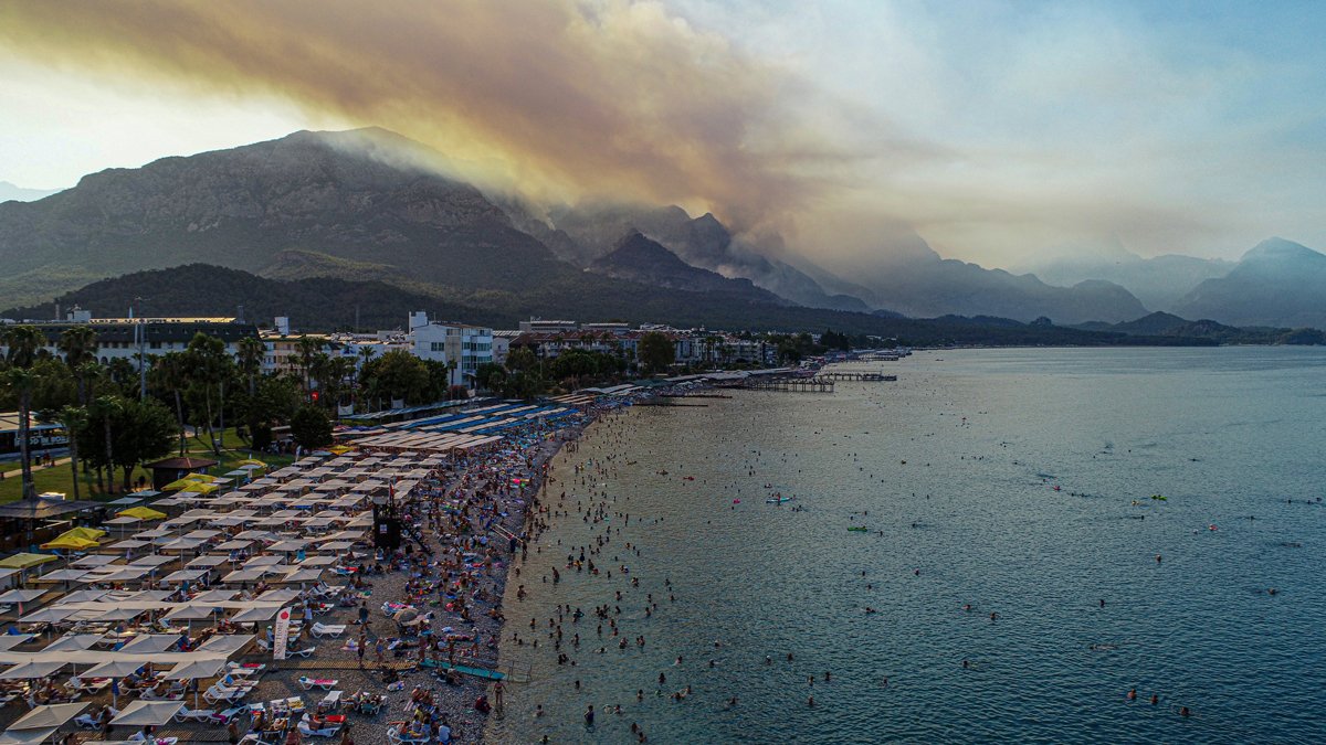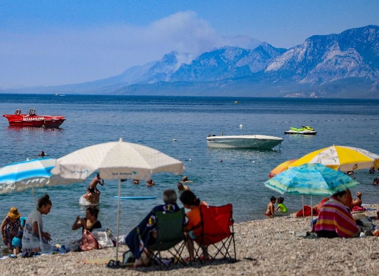 Yaklaşık 200 hektarlık alanda etkili olan yangın nedeniyle oluşan dumanlar 40 kilometre uzaklıkta Antalya şehir merkezindeki birçok noktadan görülebiliyor. Beydağları'nın sırtındaki vadiden yükselen dumanlar, tatilcilerin denize girip güneşlendiği Konyaaltı Sahili'nden çıplak gözle izlenebiliyor. Sahile gelen tatilciler ise denize girip güneşleniyor.