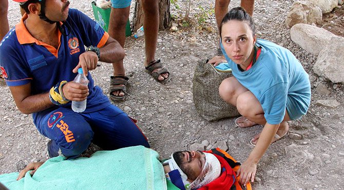 Ulusal Medikal Kurtarma Ekibi’nin de (UMKE) bölgeye sevk edilmesiyle Belceğiz Plajı’ndan hareket eden 3 UMKE ve 3 sağlık görevlisi kısa sürede Kelebekler Vadisi’ne ulaştı. Vadide 1 kilometre yürüyüp kayalıklara tırmanan ekipler, ağır yaralanan Batı’ya ilk müdahaleyi olay yerinde yaptı.Kayalıklardan sedye ile taşınan Barış Batı, oradan tekneye taşındı. Kumburnu Plajı'na ulaşan kazazede 2 saatlik bir uğraşın ardından Lokman Hekim Esnaf Hastanesi’ne götürüldü.