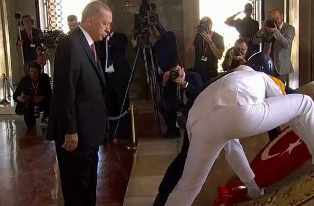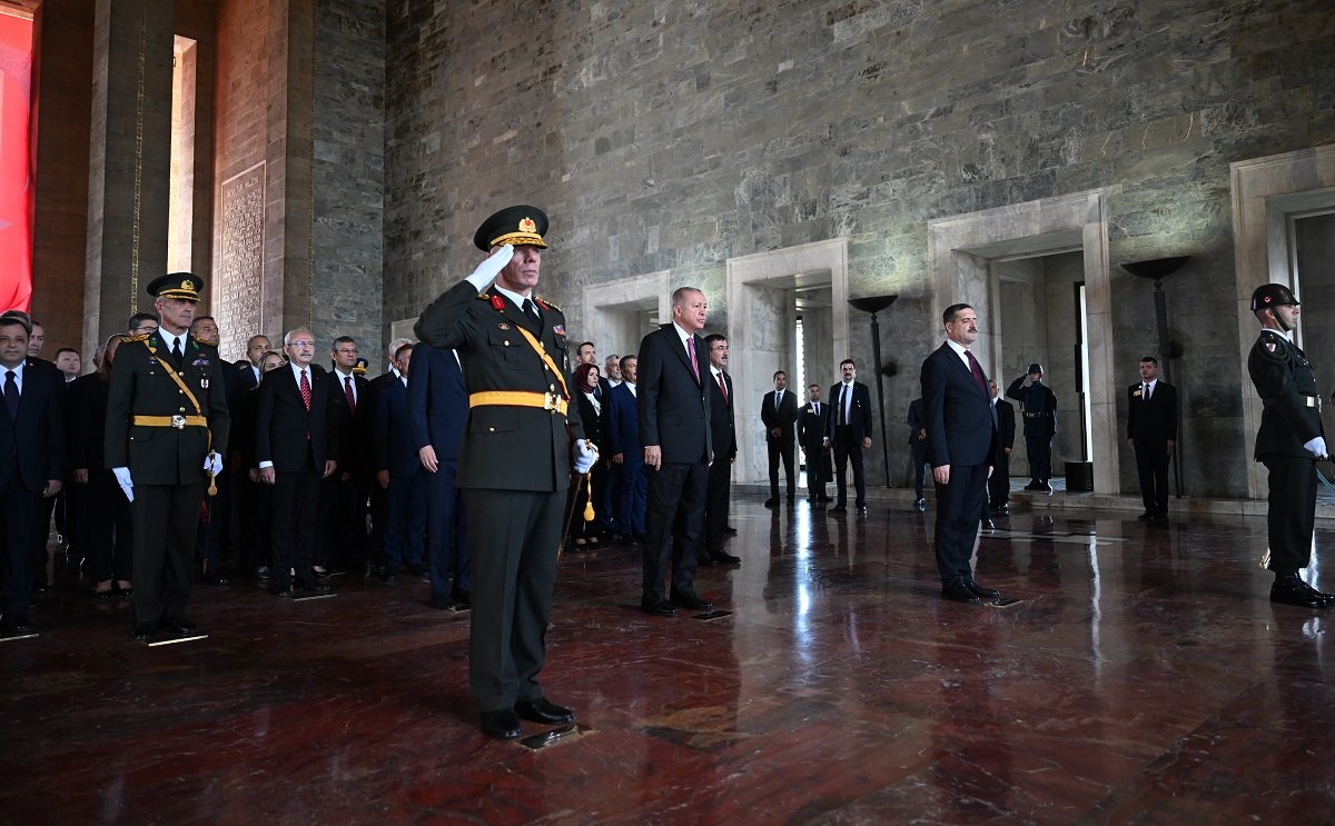 Cumhurbaşkanı Erdoğan, Türkiye Cumhuriyeti'nin kurucusu Atatürk'ün mozolesine çelenk bıraktı.