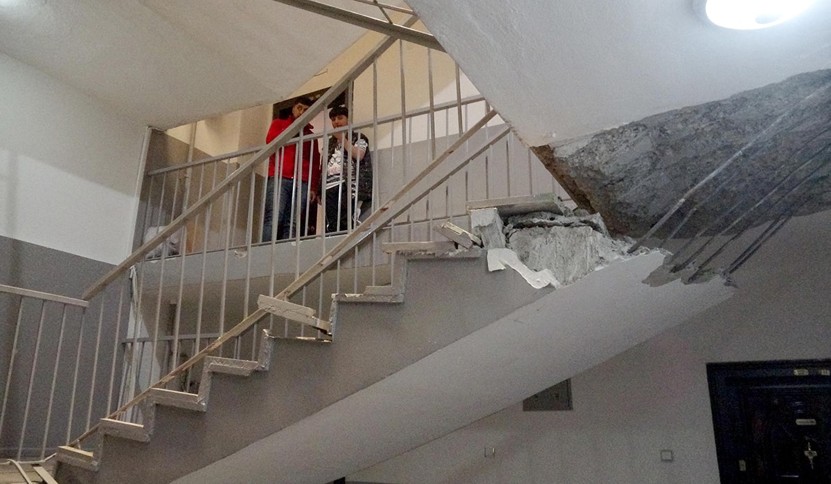 Erzurum Palandöken ilçesi Abdurrahmangazi Mahallesi'nde 5 katlı bir binanın ikinci katındaki merdiven 12.30 sıralarında henüz bilinmeyen bir nedenden çöktü.