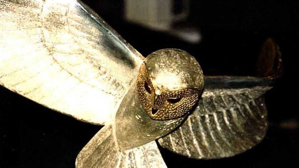 Esas olarak gümüşten yapılmış, altınla kaplı kanatları uzatılmış bir baykuş heykelciği ve küçük yakutlar ve küçük elmaslarla süslenmiş bu altın heykelin ağırlığı yaklaşık 10 kg, kanat açıklığı da yaklaşık 50 santimetredir.