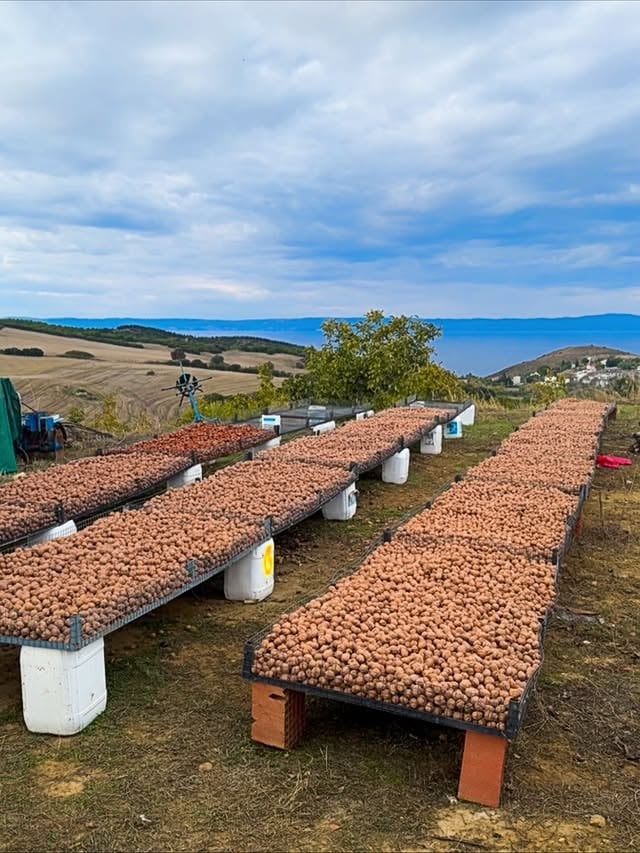 Ünlü oyuncu ayrıca ceviz hasadını da, “Her kırışta taze bir doğallık, her lokmada emeğin tadı var” sözleriyle takipçileriyle paylaştı.