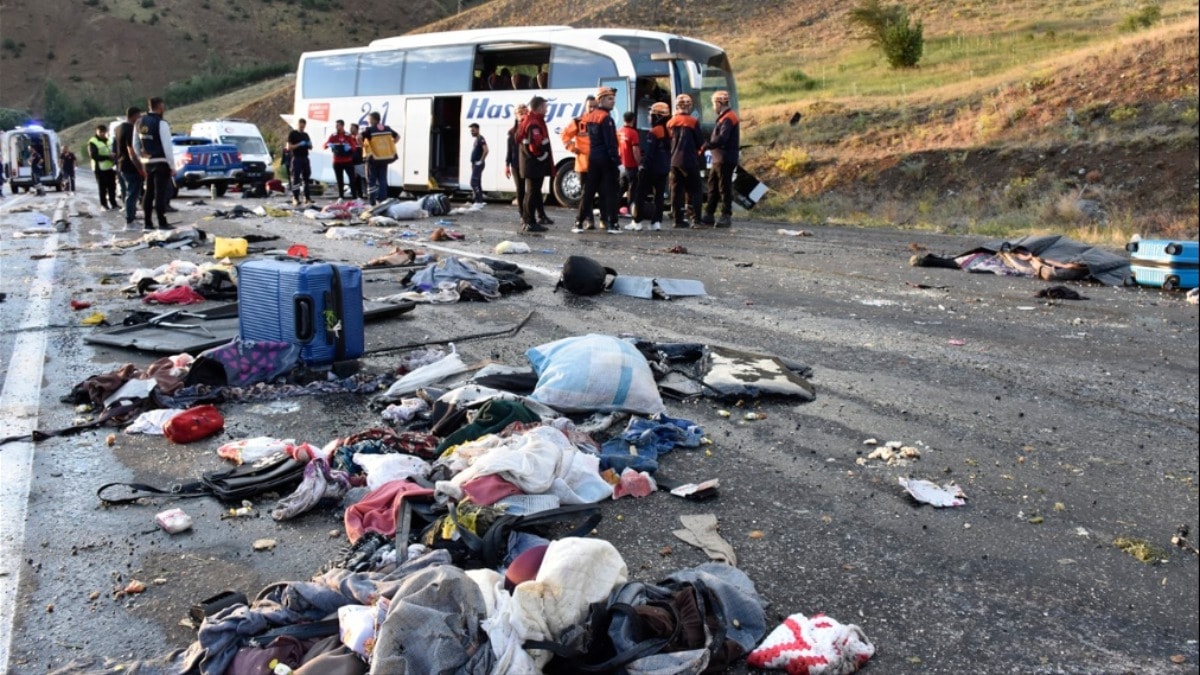Kaza sırasında yolcuların bir kısmı devrilen otobüsün camlarından dışarı fırladı.