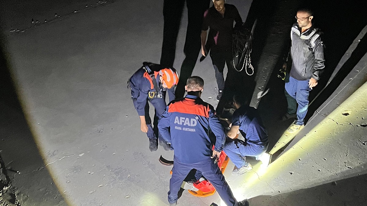 AFAD ekiplerinin çalışmaları sonucunda Ali D. düştüğü yerden sedyeyle çıkarıldı.
