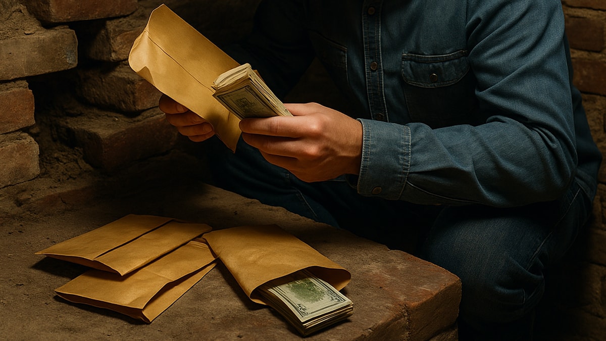 BEŞ ZARF VE TUĞLALARIN ALTINDA DOLARLAR