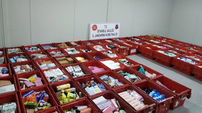 Küçükyalı'daki adrese baskın düzenleyen ekipler kozmetik firmasına ait ürünlerin tamamını ele geçirdi. Piyasa değeri 400 bin lira olan malzemeler firmaya teslim edilirken, yakalanan 4 şüpheli çıkarıldıkları adli makamlarca tutuklandı.