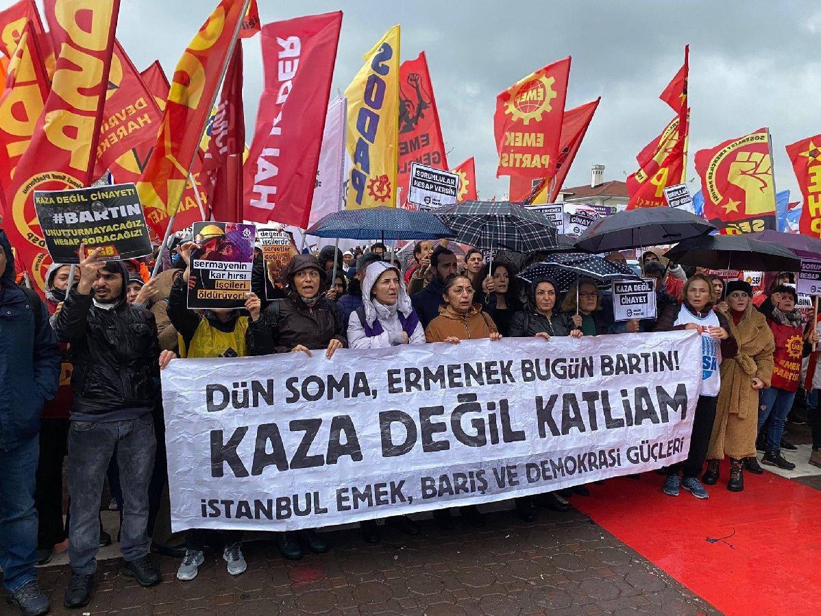 Bartın'da hayatını kaybeden 41 madenci için Emek, Barış ve Demokrasi Güçleri İstanbul Kadıköy'de eylem yaptı.