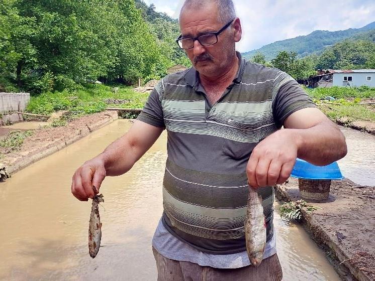 Bolu'nun Mudurnu ilçesine bağlı Taşkesti beldesinde etkili olan sağanak sonrası taşan Şimşirli Deresi nedeniyle 2 alabalık çiftliğinde bulunan yaklaşık 410 bin alabalık sel sularına karıştı.