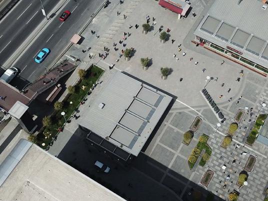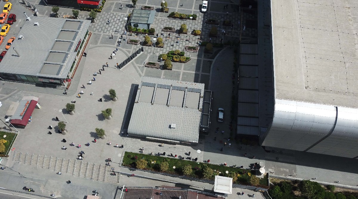 Esenyurt'ta gençler alışveriş merkezine akın etti. AVM önünde kuyruk oluşturan gençler havadan da görüntülendi.