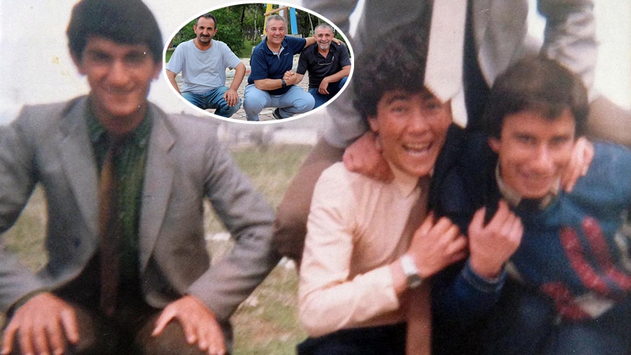Ağrı'da okul müdürü olan Mahmut Söylemez, Ankara'da sosyal bilgiler öğretmeni olarak görev yapan Hasan Duran ile Aydın'dan gelen emekli öğretmen Zafer Gündoğdu fotoğraf çekildi.