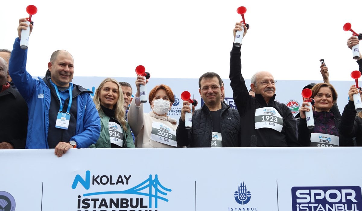 15 Temmuz Şehitler Köprüsü‘nün Anadolu yakasından Avrupa yakası istikametine koşulan, yaklaşık 40 bin kişinin katıldığı maratonun başlangıç kornasını; CHP Genel Başkanı Kemal Kılıçdaroğlu, İYİ Parti Genel Başkanı Meral Akşener, CHP İstanbul İl Başkanı Canan Kaftancıoğlu, İYİ Parti İstanbul İl Başkanı Buğra Kavuncu ve İBB Başkanı Ekrem İmamoğlu ile eşi Dilek Kaya İmamoğlu birlikte çaldı.