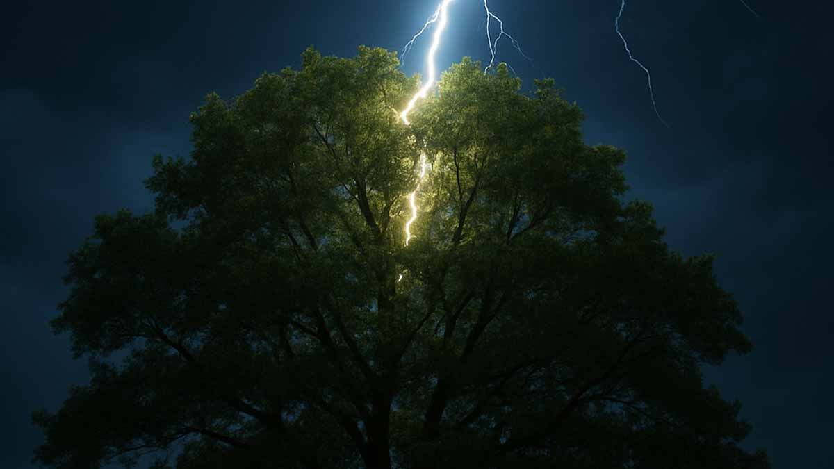 Yüksek boylu ve genellikle tek başına büyüyen meşe ağaçları, elektrik iletkenliği yüksek olan yapıları nedeniyle yıldırımın en çok tercih ettiği hedeflerdendir. Bu tür ağaçların altında bulunmak, fırtına sırasında büyük bir tehlike oluşturabilir.