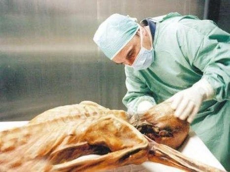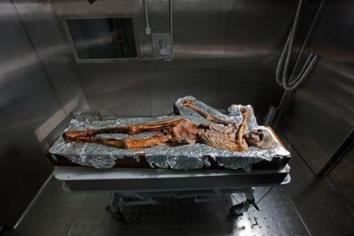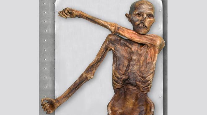 Buzların altında kaldığı için doğal şekilde mumyaya dönüşen ceset 1991 yılında Güney Tirol'deki Ötztal Alplerinde bulunmuştu. Bir müzeye konulan buluntunun tahmini dış görünüşü de figür, resim ve heykellere dönüştürülmüştü.