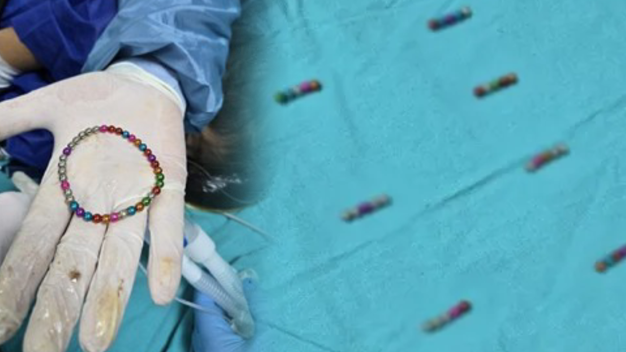 "Bu cisimlerle alakalı çok sayıda olguyla karşılaşıyoruz. Hastamız da boncuk şeklinde, ufak da olsa kuvvetli çekim gücüne sahip neodimin dediğimiz maddelerden oluşan mıknatısları yutmuş. Bu mıknatıslar değişik sebeplerle toplumumuzda yaygın olarak bulunuyor. Bunların önemli bir kısmı oyuncak olarak bulunuyor ve bu oyuncaklarda maalesef küçük çocukların ellerine rahatlıkla geçebiliyor. Özellikle 5 yaşından küçük çocuklara bu tarz küçük cisimlerin verilmesini ve üzerinde takı olarak kullanılmasını bırakın etrafında bile olmaması gerekiyor."