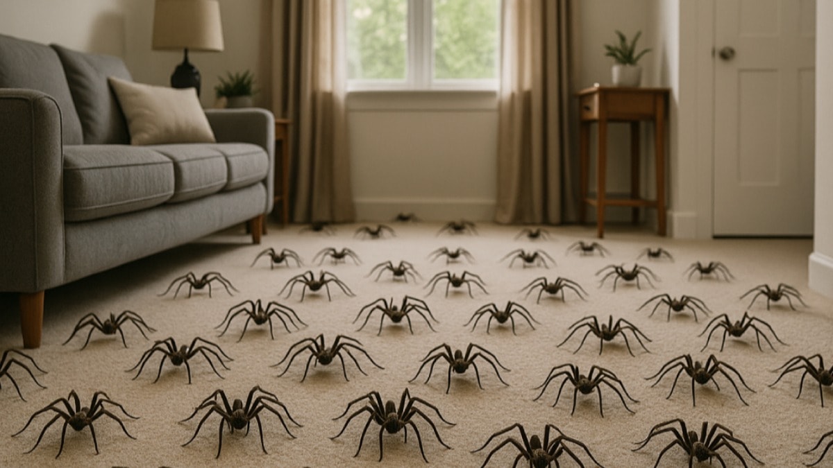 Aile başlangıçta evdeki böceklerin zararsız olduğunu düşündü. Ancak haşere kontrol ekipleri durumu incelediğinde, karşılarına devasa bir örümcek kolonisi çıktı.