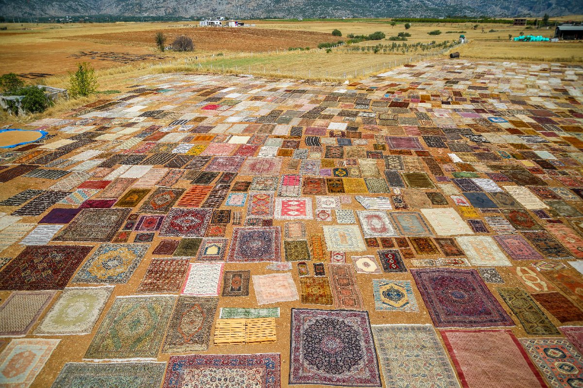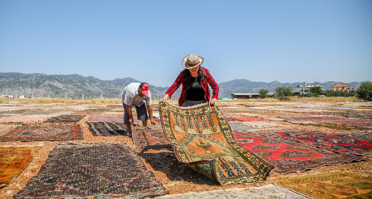 Bir halının yünleri içindeki fazla boyanın buhar olup, uçması için güneş banyosunun şart olduğunu aktaran Börekçi, "Halı tarlaları halının gerçek kimliğini ortaya çıkarmak için çok önemli. O nedenle bir halı günlerce güneşin altında bekletiliyor" dedi.