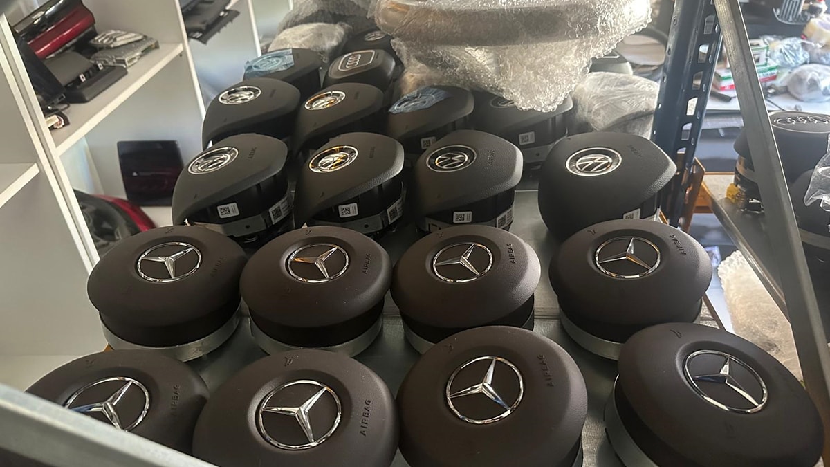Depoda yapılan aramada, 619 gümrük kaçağı araç airbag, 324 araç aksı, 232 araç stop farı, 120 göğüs paneli, 100 direksiyon simidi, 30 araç arması, 20 eksantrik, 7 far beyni ele geçirildi.