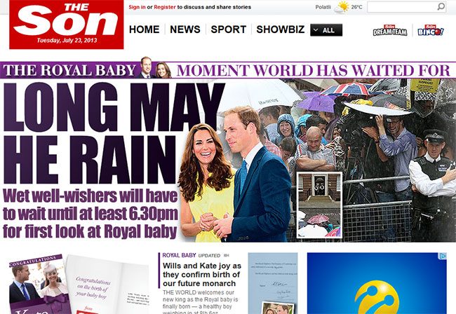 The Sun (Güneş) gazetesi isminin bir harfini değiştirerek The Son (Oğul) ismiyle basıldı. Gazetenin internet sitesinde de bu logo kullanıldı.