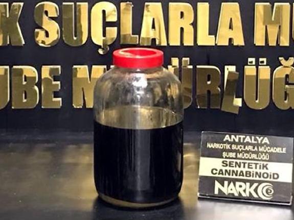 Antalya'da polis ekipleri, 500 bin kullanımlık sıvı halde sentetik kannobinoid ham maddesi ele geçirdi. Gözaltına alınan 2 şüpheli tutuklandı.