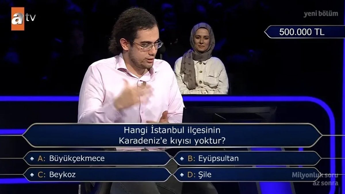 Yarışmaya katılan Barkın Kenet isimli yarışmacı, ilk baraj sorularını başarıyla geçerek ikinci tura yükseldi. Performansını sürdüren Kenet, 500 bin TL’lik kritik soruyu açtırmaya hak kazandı. Soruda “Hangi İstanbul ilçesinin Karadeniz’e kıyısı yoktur?” ifadesi yer aldı.