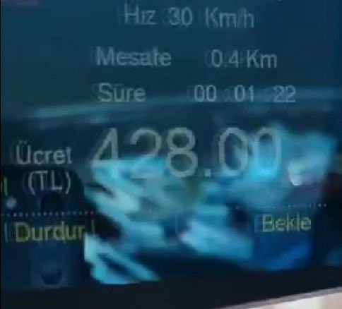 Durmaz, yaklaşık 5 dakika içerisinde taksimetre ücretine 35 TL daha yansıdığını görünce şoförü uyardı. Durmaz, ücrete itiraz ettikten sonra ödeme yapıp araçtan inerek konuya ilişkin şikayetçi oldu. Taksici Hüseyin Keleş, Durmaz'ın ödediği miktarı kendisine geri vereceğini söyledi ancak Durmaz bu ücreti kabul etmeyeceğini belirtti.