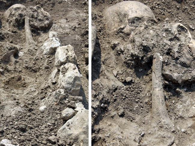 Gerçekten yaptığımız kazılarda temellerine kadar yıkılmış 6'ncı yüzyıl yapılarını gördük. Hatta çöken bir kubbenin altında iki kişiyi birbirine sarılmış halde bulduk. Kubbe taşlarının altında ezilerek kalmışlardı ve yanlarında da o dönemin sikkesi vardı. O yüzden bu dönemi rahatlıkla tarihleyebildik."