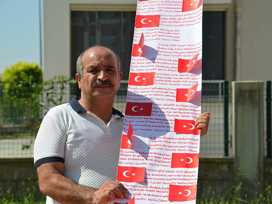 Malatya’da yaşayan Nusret Başyiğit, 6 bin mısralık şiir yazdı. Amatör şair, ‘Vatan Sevgisi’ üzerine yazdığı şiirini 200 metre uzunluğundaki kağıda sığdırabildi.