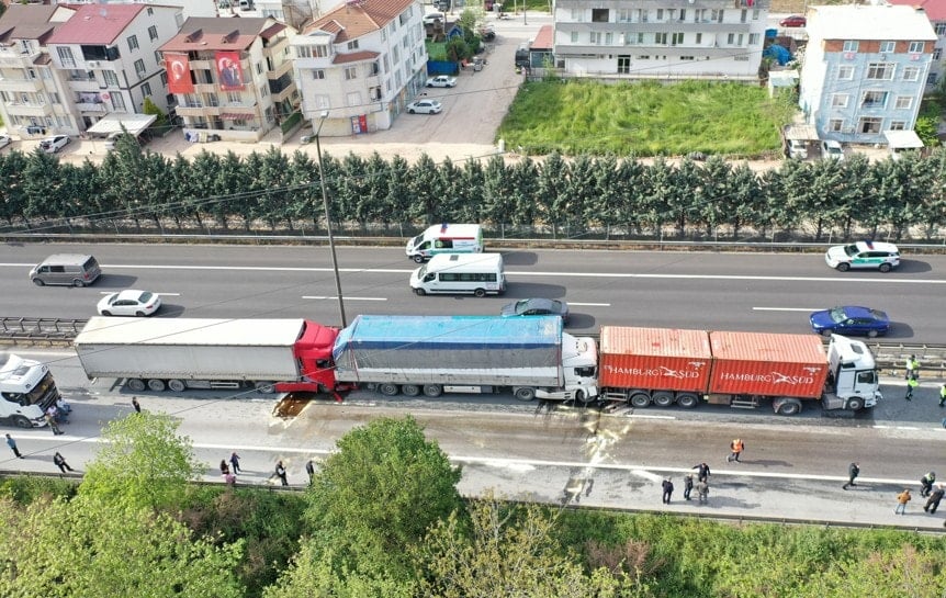 TEM Otoyolu’nun İzmit kesiminde meydana gelen kaza, Alikahya Cumhuriyet Mahallesi mevkiinde, otoyolun sol şeridinde seyir halindeki TIR’ların birbirine çarpmasıyla gerçekleşti. Henüz sürücülerinin kimlikleri ve araç plakaları belirlenemeyen 6 ağır tonajlı TIR ardı ardına çarpıştı.