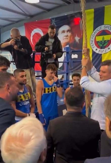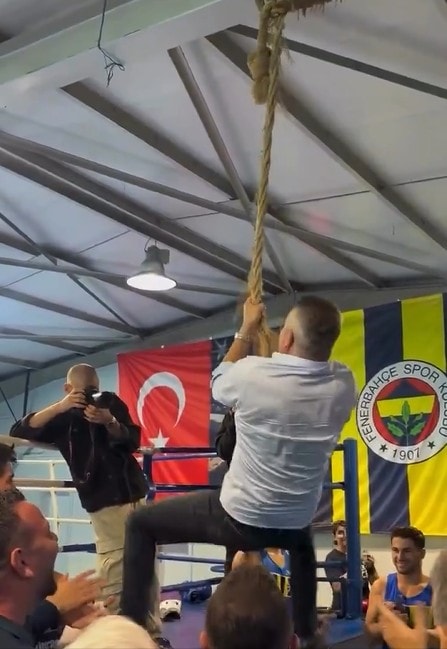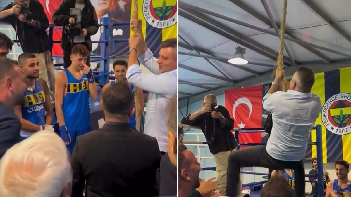 Daha önce kişisel hesaplarından spor yaptığı anlara ait sık sık paylaşımlar yapan Başkan Saran bu kez Fenerbahçe'nin genç boksçularını ziyareti sırasında üzerindeki gömlek ve kot pantolonuna rağmen zor bir 'şov' sergiledi.