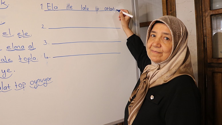 Dört çocuk annesi Mevlüde Ketrez okuma-yazma kursuna katıldı.