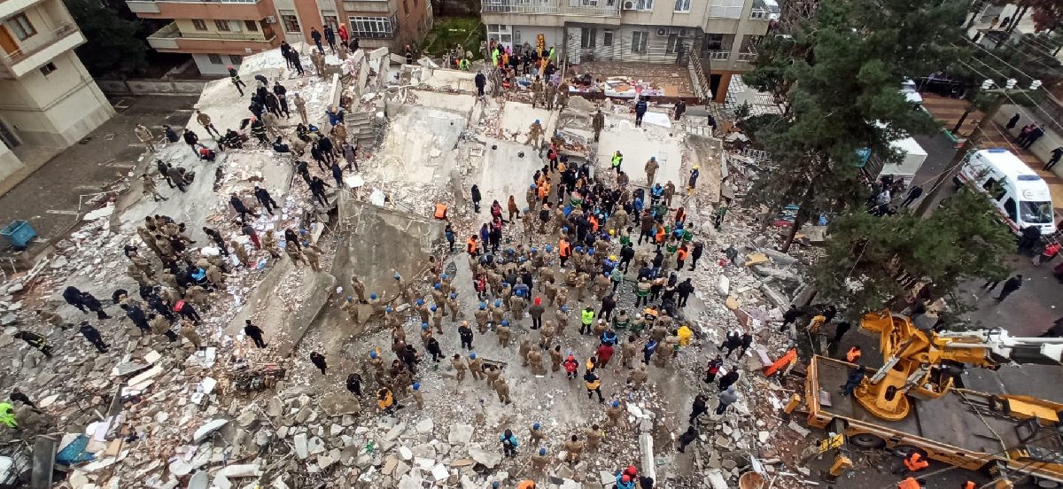 Diyarbakır (AA)Çöken binaların enkazına ulaşan ekipler, arama kurtarma çalışması başlattı.