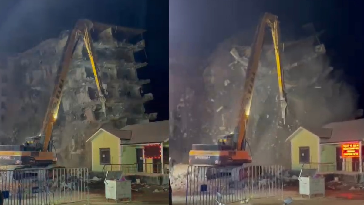 Cumhuriyet Mahallesindeki ağır hasarlı 7 katlı Yıldırım Apartmanı için güvenlik önlemi alınarak kontrollü yıkım çalışması başlatıldı. Ekiplerin iş makineleriyle gece saatlerinde yaptığı çalışma sırasında bina, bir anda çöktü.