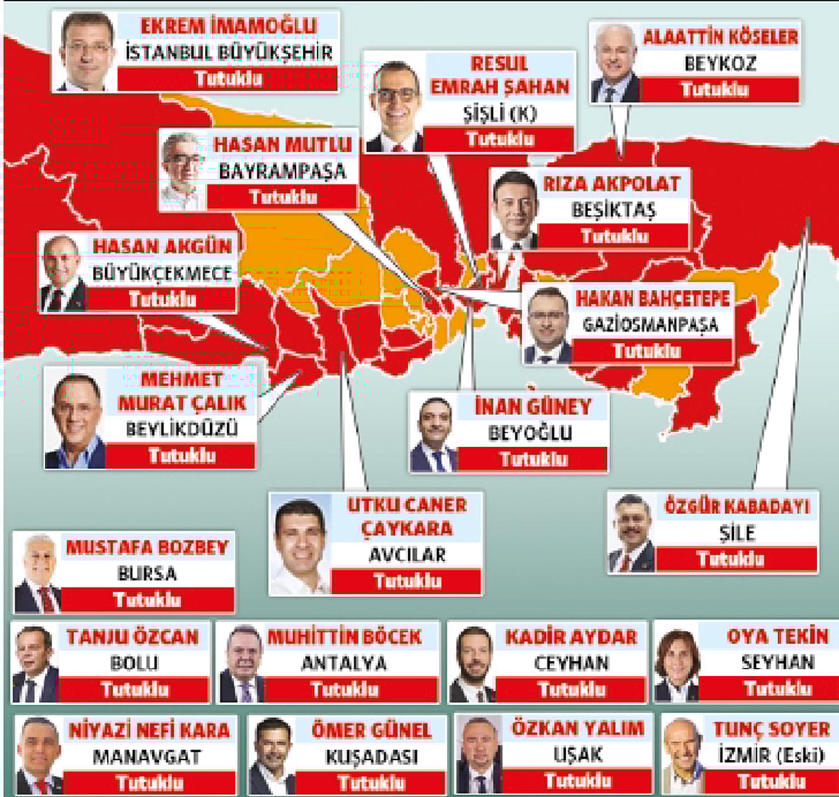 İktidar seçimle alamadığı belediyeleri operasyonlar ve tutuklamalar yoluyla aldı. Şu anda CHP’nin 18 belediye başkanı tutuklu. Son yerel seçimlerde Türkiye genelinde CHP’ye oy vermiş 8 milyon 268 bin 249 kişinin iradesi de yok sayılmış oldu.