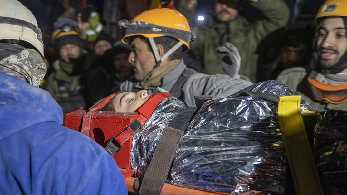 Yoğun bir çalışmanın ardından ekipler 8 yaşındaki Rıdvan Çakıroğlu'nu enkazdan kurtardı. Rıdvan Çakıroğlu, ambulansla hastaneye kaldırıldı. (AA)