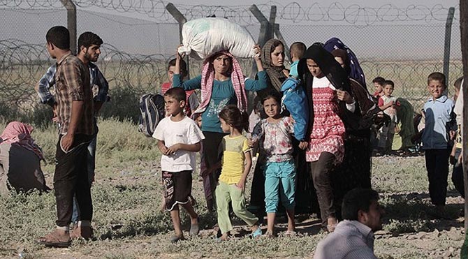 Çoğunluğu kadın, çocuk ve yaşlılar, sınırdan geçerek minibüslerle Akçakale Sınır Kapısındaki kayıt merkezine, ardından da kamplara yönlendiriliyor.