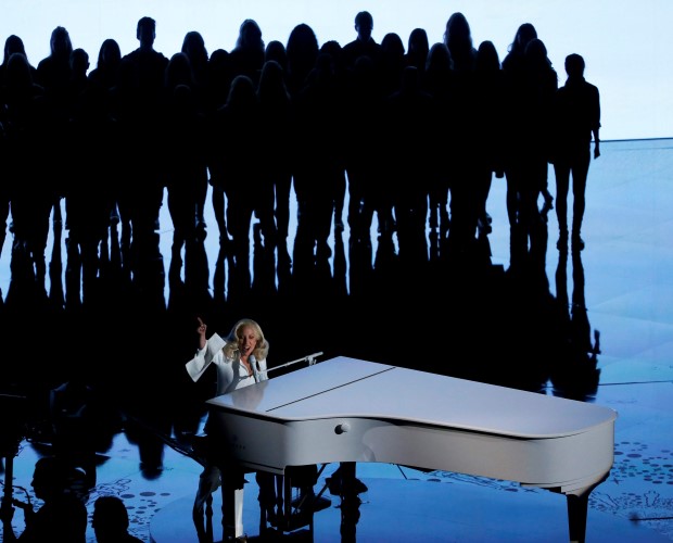 Foto: ReutersBeyaz bir piyano başında beyaz kıyafetiyle şarkısını seslendiren Lady Gaga, Amerika'da üniversitelerdeki taciz ve tecavüzleri konu alan "The Hunting Ground" adlı belgesel için yazdığı "Til it happens to you" (Sizin başınıza gelene kadar) adlı parçasını seslendirdi.