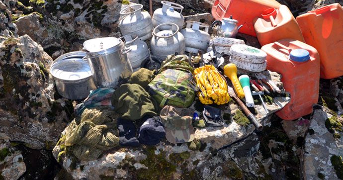 İl Jandarma Komutanlığı ekipleri, dün Belen ve Arsuz ilçeleri arasında kalan Amanos Dağları'nın sarp ve ormanlık alanlarda terör örgütünün muhtemel barınma yerleri ve sığınaklarına yönelik operasyon başlattı. Jandarma Özel Harekat Timi'nin de destek verdiği operasyonda ormanlık alana gizlenmiş 4 ayrı sığınak saptandı. Buralarda yapılan aramada 3 bidon içine sıkıştırılmış 90 kilo patlayıcı, 4 uzaktan komuta düzeneği, 3 metre saniyeli fitil, 5 kullanıma hazır el yapımı patlayıcı madde düzeneği, 1 jeneratör, 14 mekanik kapsül, 5 piknik tüp, 700 metre kablo, 108 kilo muhtelif gıda maddesi, 10 tıbbi malzeme, 56 inşaat alet ve malzemesi ele geçirildi. Patlayıcı ve diğer malzemeler olay yerinde imha edildi.