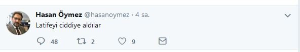 Tweet kısa sürede büyük tepki çekti ve Öymez tweetini silerek ardından "Latifeyi ciddiye aldılar" diye ikinci bir tweet attı.
