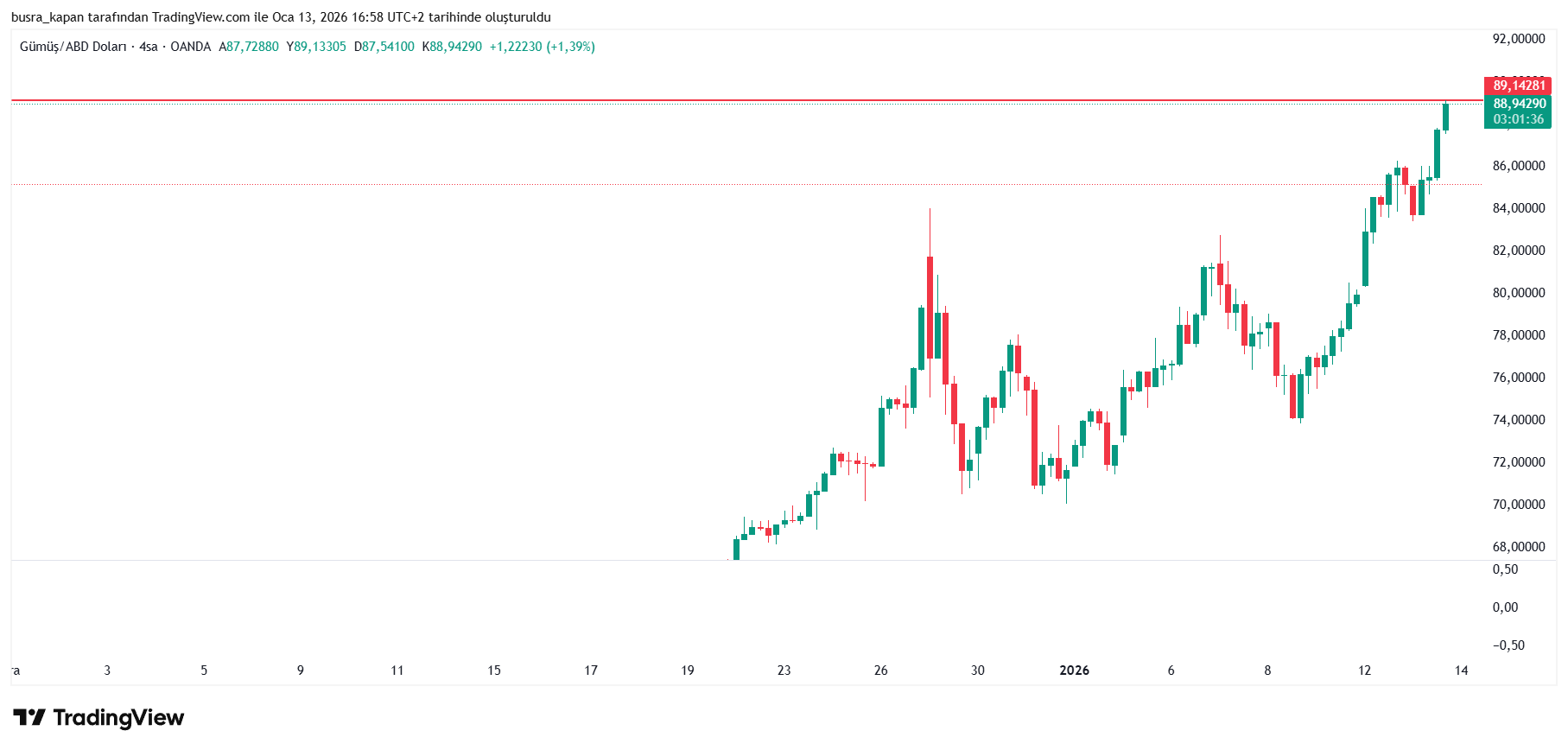 Ons gümüş veriden önce 86,77 dolar düzeyindeydi. Veriden sonra 88,19 dolar oldu.