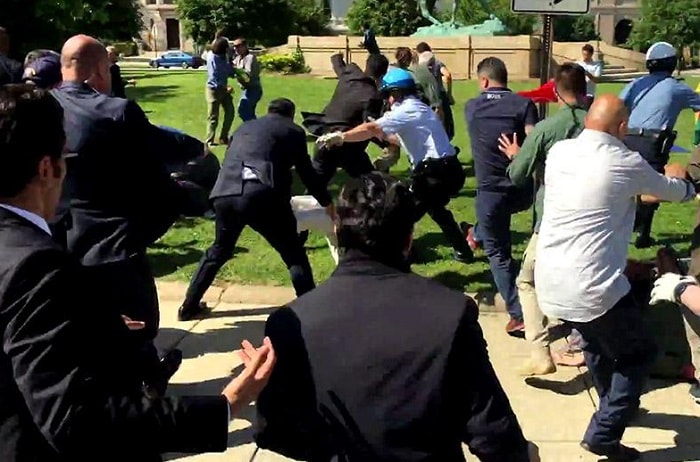 16 Mayıs 2017'de Washington’da Türk Büyükelçiliği Konutu önünde terör örgütü PKK yanlısı protestocular ile ellerinde Türk bayrakları taşıyanlar arasında arbede yaşanmış, olaya Erdoğan’ın korumaları da dahil olmuştu. Olaylarda 11 kişi yaralanmıştı.